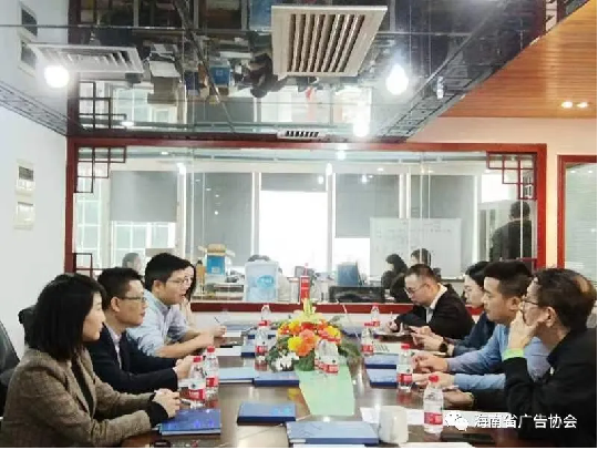 应海南经贸职业技术学院国际旅游学院诚约,2023年3月3日上午,海南省广告协会在海口召开座谈会,出席人员有:海南省广告协会会长李春亮、海南省广告协会秘书长张林、海南经贸职业技术学院国际旅游学院副院长陈松、市场营销专业带头人周诗敏、纳瓴蓝图肖坤、王琼、来画科技杨阳、何龙杰。