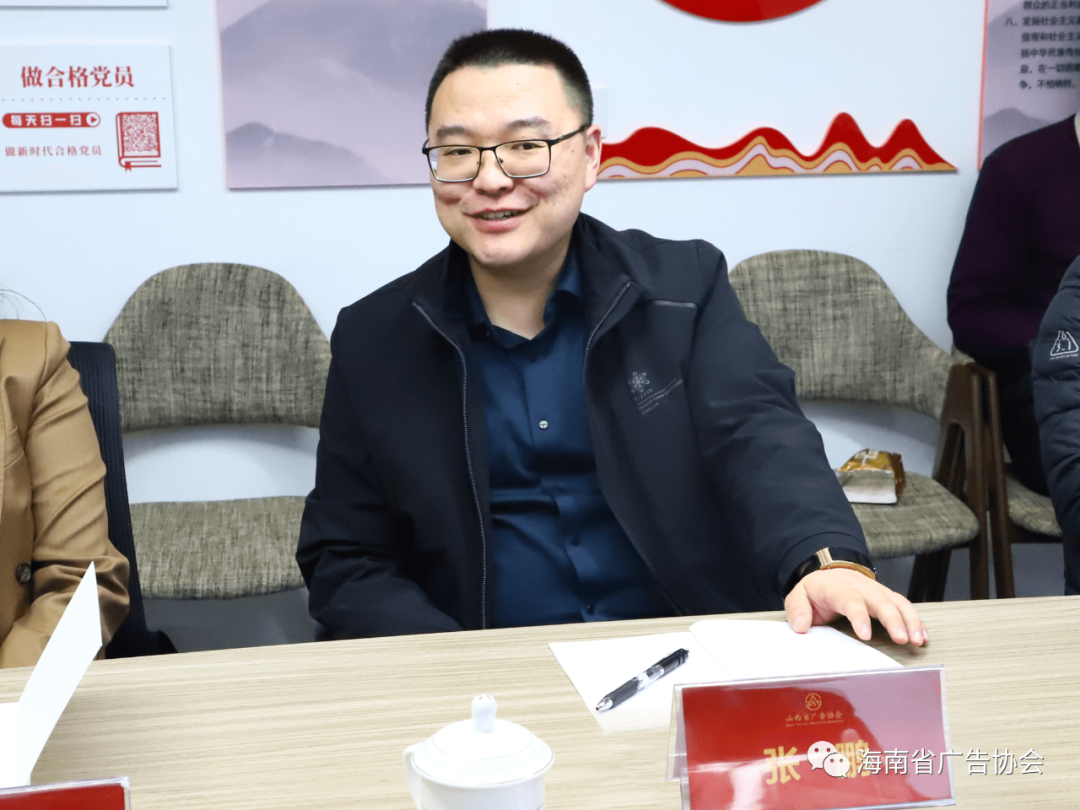 座谈会上,张鹏首先对海南省广协走访考察团的到来表示热烈欢迎,他说,非常高兴和大家相聚一起,交流广告行业的发展。山西省广告协会近几年发展很快,变化很大,做了很多卓有成效的工作。近几年来,山西省深化“放管服”改革,持续优化营商环境,特别在疫情过后,助力行业发展、活跃市场主体,是市场监管与行业协会共同的愿望和目标,希望通过交流合作,一起为行业发展出谋划策。