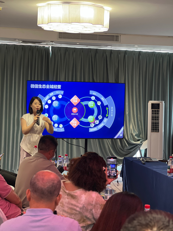 接下来由巨量学认证讲师、金优文化传媒创始人、广协自媒体联盟工作委员会副秘书长林友敏以《微信全域经营,助力企业破局增长》为题,为大家分享了企业在微信生态里,如何多链路经营,形成销转闭环。